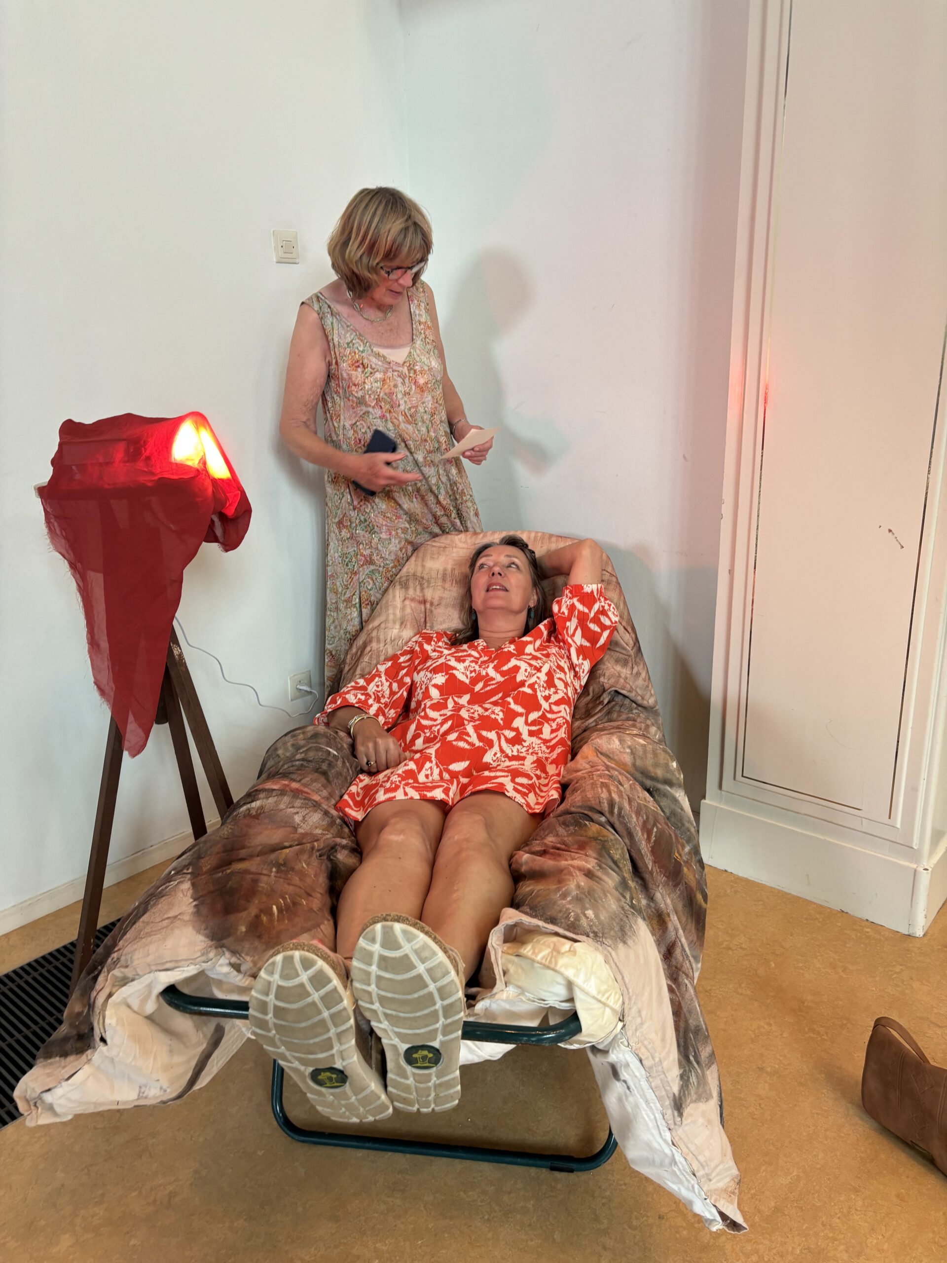 Vaccinatielocatie, 12 december 2023 ‘Hoort u bij elkaar?’, vraagt de vrouw achter de balie. Haar leesbril bungelt aan een schelpenketting.