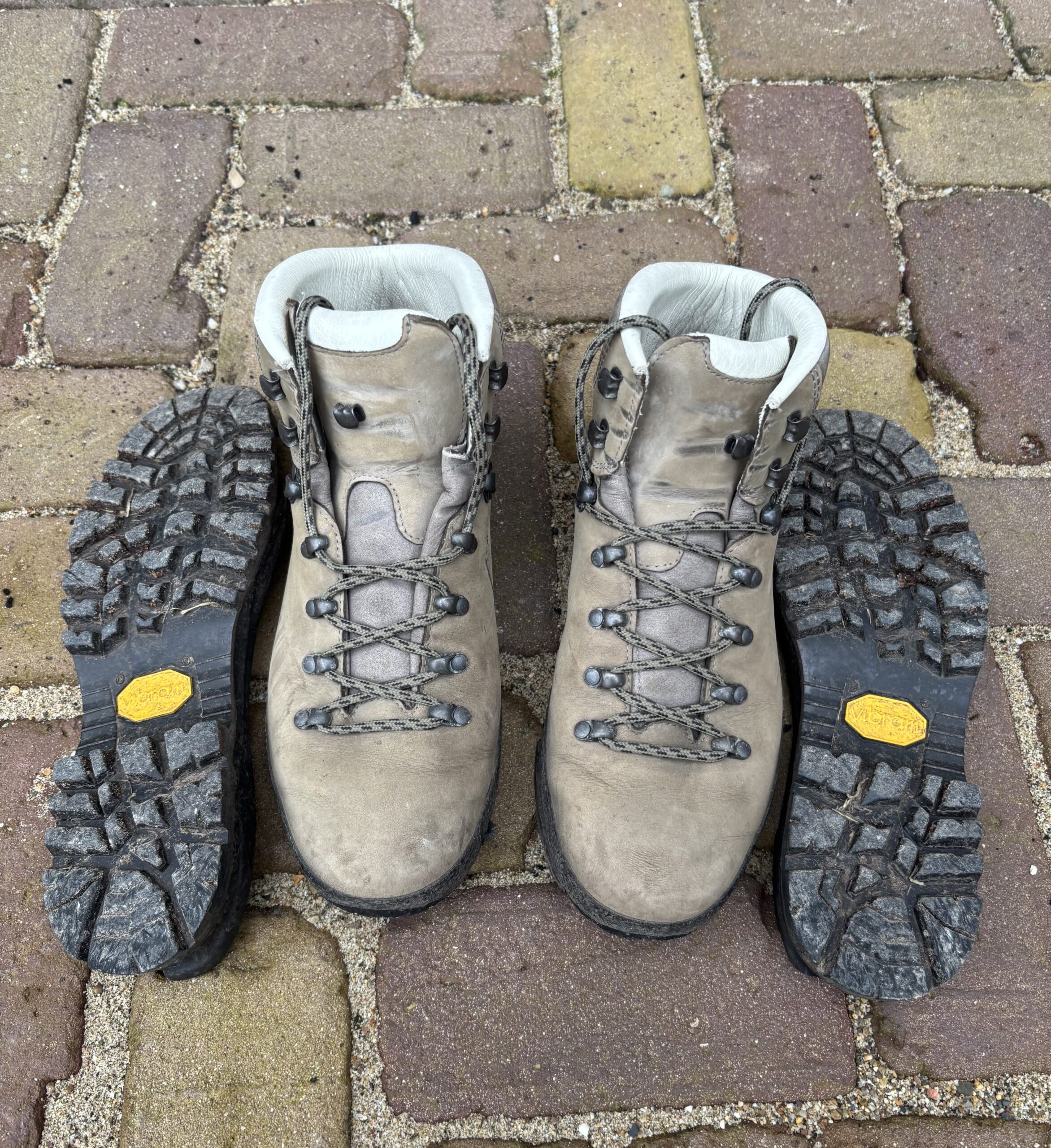 ‘Als je wandelschoenen koopt, koop dan van het merk Hanwag, dat zijn de beste’, kreeg ik altijd te horen. Al die jaren zat dat merk in mijn hoofd. En nu blijkt dat dit paar al twintig jaar op zolder ligt te wachten op een volgende wandeltocht. Wie wat bewaart die heeft wat.